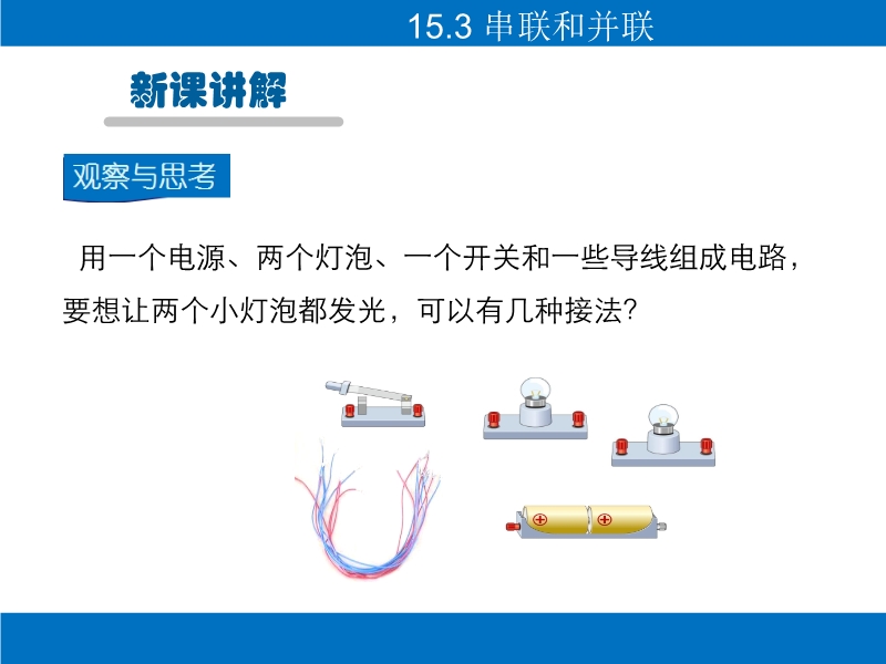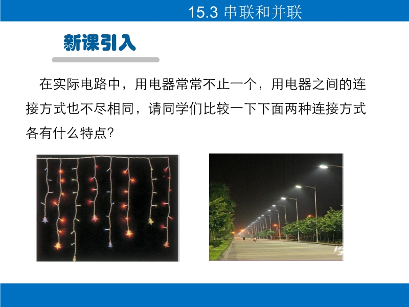 【内容简介】初中物理人教版九年级全册人教版《15.3串联和并联》ppt+flash课件,共有17张幻灯片和2个动画。课件主要引导学生认识了串联电路和并联电路,并探究了串联电路和并联电路的特点等。