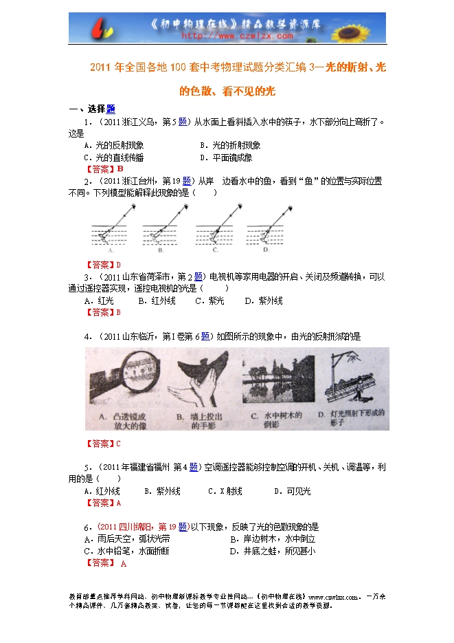 - 3402024年四川省内江市中考物理试题及答案(图片版)
