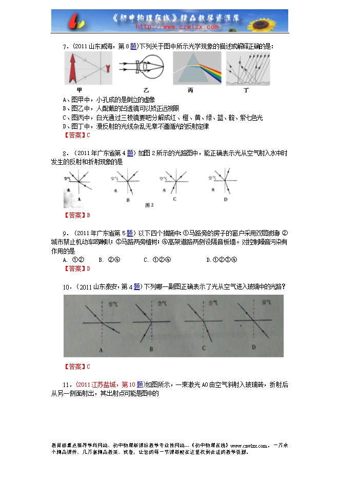 4.如图1所示,是观察对岸的树木在水中倒影的光路图,其中,正确的是