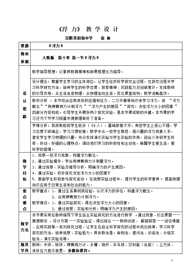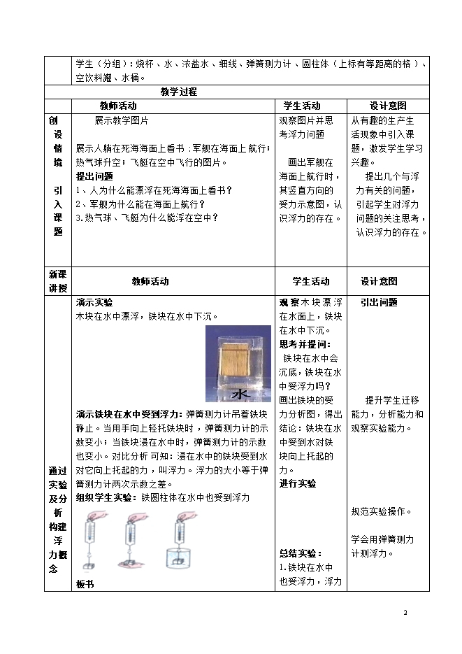 衡东县洣水镇洣水中学:《10.1浮力》PPT课件+教案