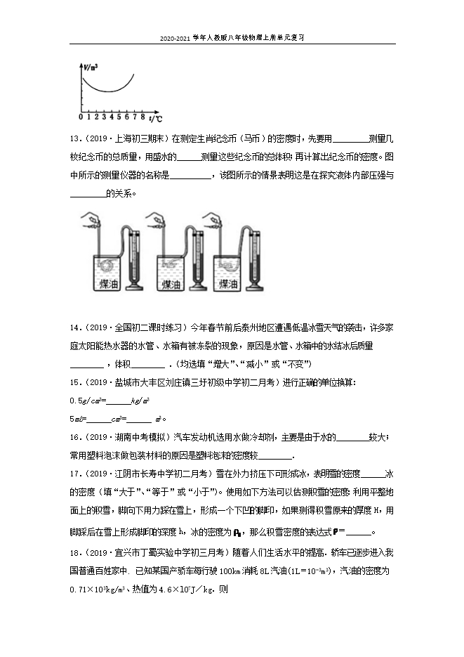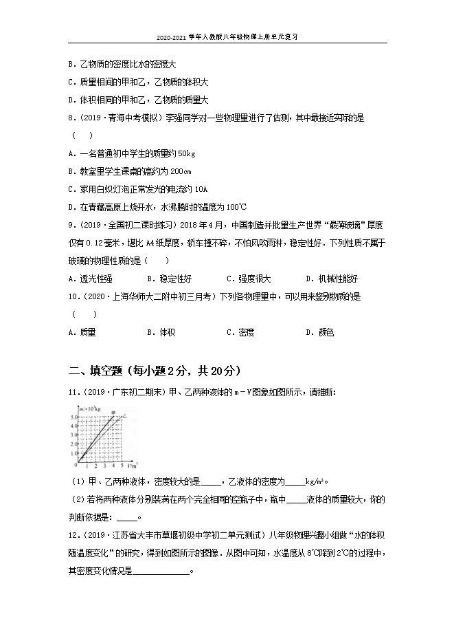 12. 甲、乙两物体的质量之比为2:3,体积之比为3:2,则甲、乙两物体的密度之比为______;若把甲物体截去一半,则甲、乙两物体的密度之比为______。