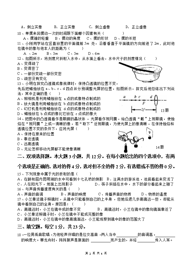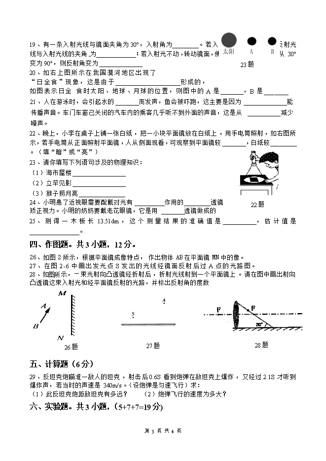 - 5222019-2020学年八年级物理单元双基双测AB卷:第03章 光和眼睛单元测试卷(B卷提升篇)(沪粤版)