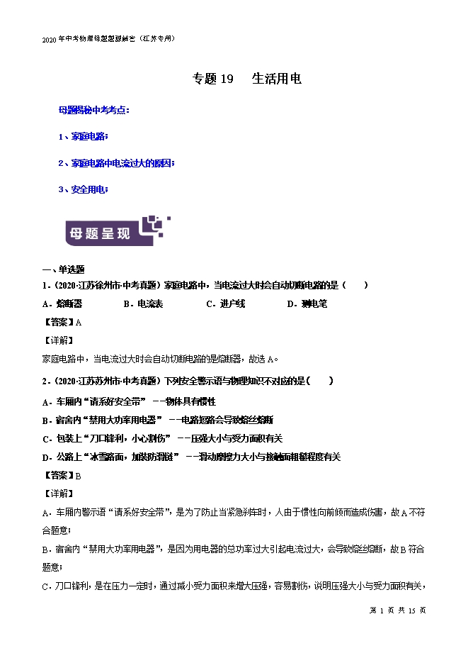 2020届人教版九年级物理同步培优学案练习:专题15.3 串联和并联(原卷版和解析版)