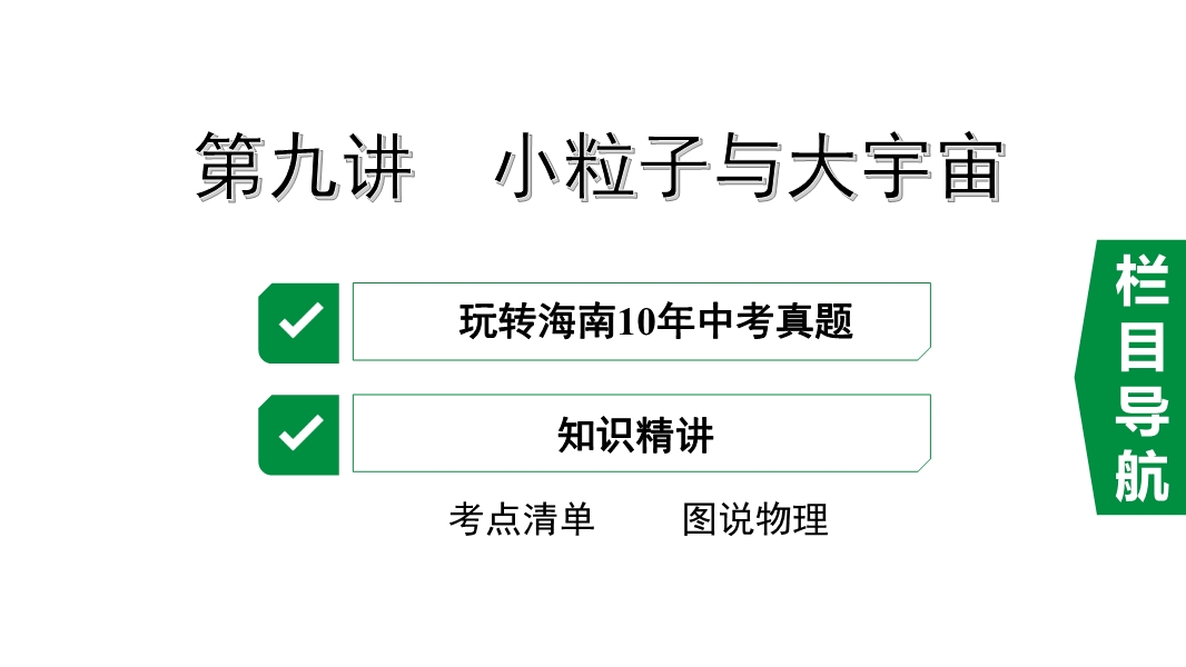 2020年海南中考物理一轮考点通关(课件+分层训练):第九讲 小粒子与大宇宙 (共2份打包)