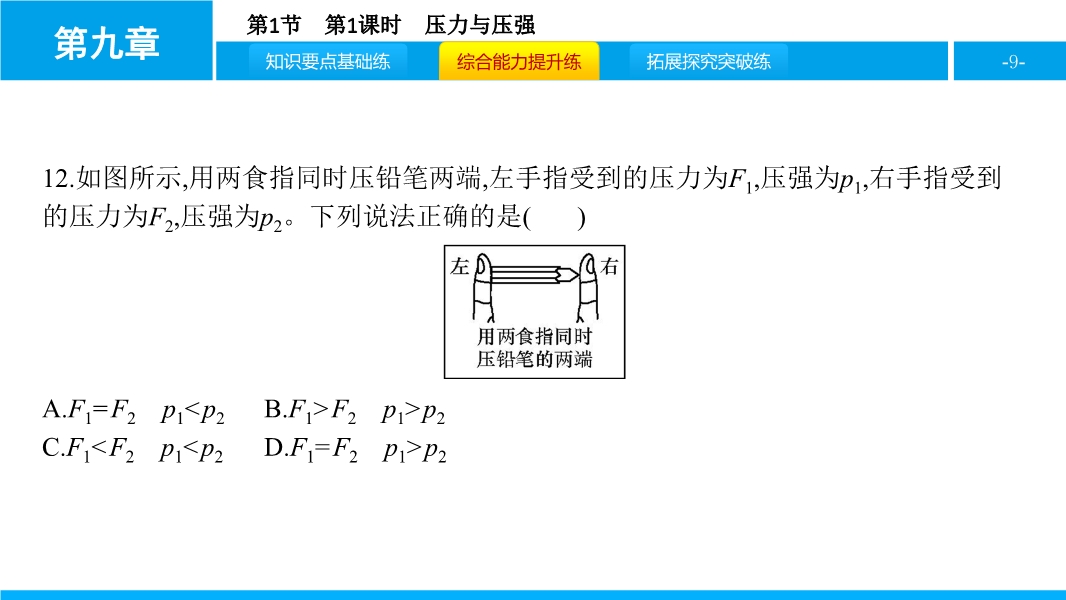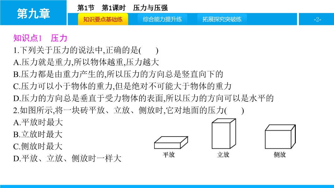 2020年春人教版物理八年级下册同步课件与分层精练:第九章 压强 (共18份打包)