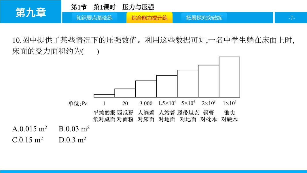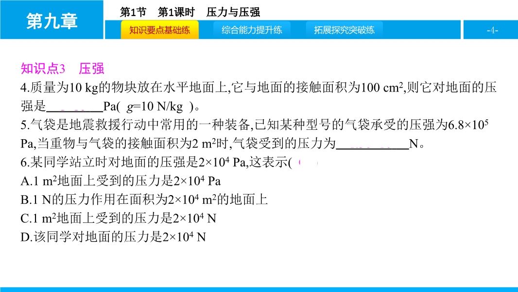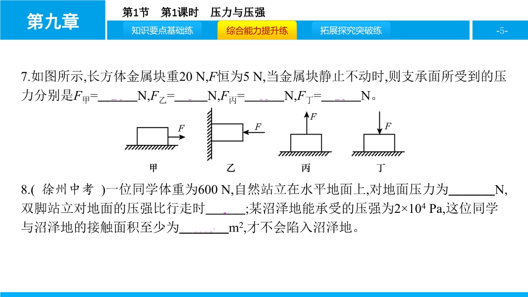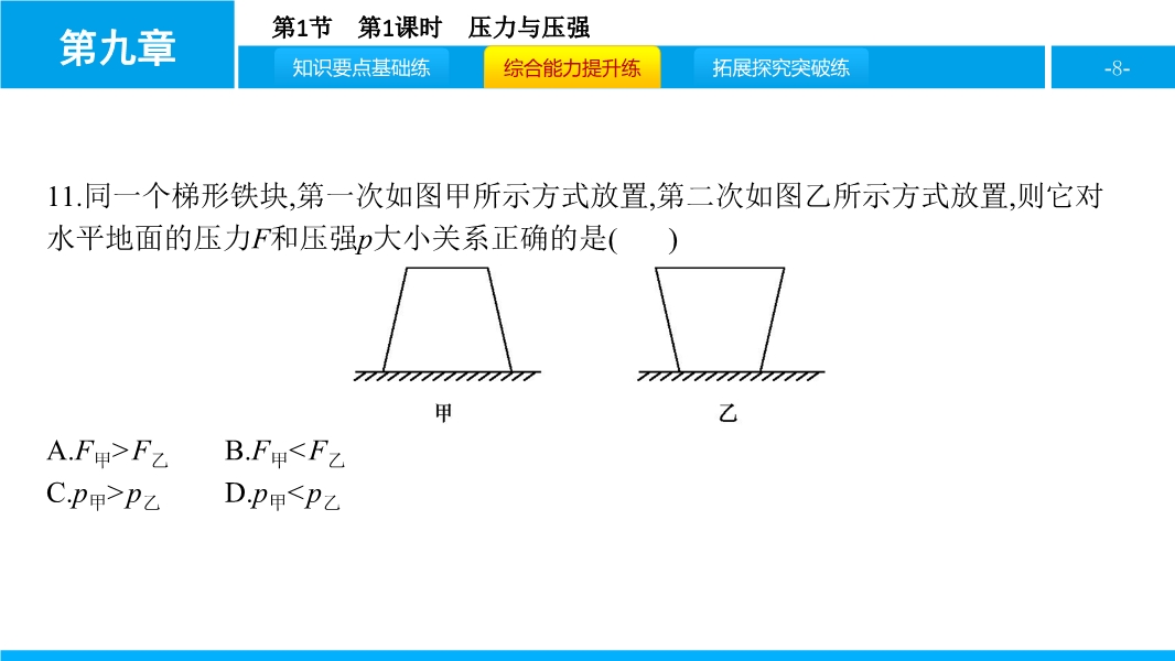 - 332026春沪粤版物理八年级下学期全套培优精做课件:8.1 压强
