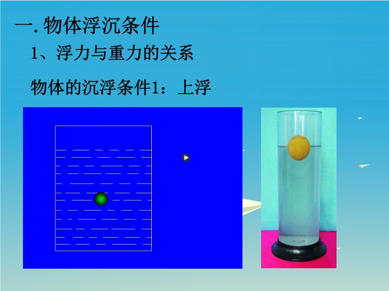 【内容简介】【精品】沪科版2019-2020学年八年级全册物理同步教材课件:9.3物体的浮与沉,内含2课时的ppt课件和1个flash动画素材。