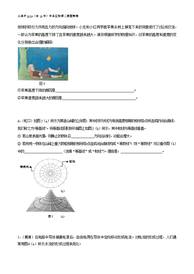 【内容简介】1.(宝山、嘉定)在图11所示的电路中,电源电压恒定不变,R1的阻值为20欧。闭合电键S,电流表A1的示数为0.3安、电流表A2的示数为0.5安。 ⑴求电源电压U。⑵求电阻R2的阻值。⑶现用R0替换电阻R1、R2中的一个,使图11中的电流表A2的示数变为0.4安。求电阻R0消耗的电功率P0。【答案】⑴∵闭合电键,R1与R2并联; 电流表A1与电阻R1串联,测量通过R1的电流I1;电流表A2串联在干路上,测量总路中的电流I总; ∴I2=I总-I1=0.5安-0.3安=0.2安, ∴U1=I1×R1=0.3安×20欧=6伏 ∴U=U2=U1=6伏 (2)R2= = =30欧; (3)若用R0替换R1,且I′总=0.4安,U0=U总=6伏, 则I0=I′总- I2=0.4安- 0.2安=0.2安 ∴P0=U0×I0=6伏×0.2安=1.2瓦若用R0替换R2,且I′′总=0.4安,U0=U总=6伏,则I0=I′′总- I1=0.4安- 0.3安=0.1安 ∴P0=U0×I0=6伏×0.1安=0.6瓦2.(崇明)在图10所示的电路中,电源电压为6伏且不变.电阻R1的阻值为10欧,滑动变阻器R2上标有“50Ω 2A”字样,闭合电键S,电流表示数为0.2安.求: (1)电压表的示数;(2)电阻R2连入电路的阻值;(3)若移动滑动变阻器滑片P到某位置时,发现电压表和电流表中有一个已达满刻度,求此时电压表和电流表的示数.【答案】(1)U1=I1R1=0.2安×10欧=2伏 公式、代入和结果各1分 (2)R2=U2/I2=(UU1)/I1=(6伏2伏)/0.2安=20欧(3)当电压表V达到满刻度时,U1=3伏, 即电压表V示数为3伏; I1=U1/R1=3伏/10欧=0.3安,即电流表A示数为0.3安。 当电流表A达到满刻度时,I1=0.6安,即电流表A示数为0.6安;U1=I1R1=0.6安10欧=6伏,即电压表V示数为6伏 .........
