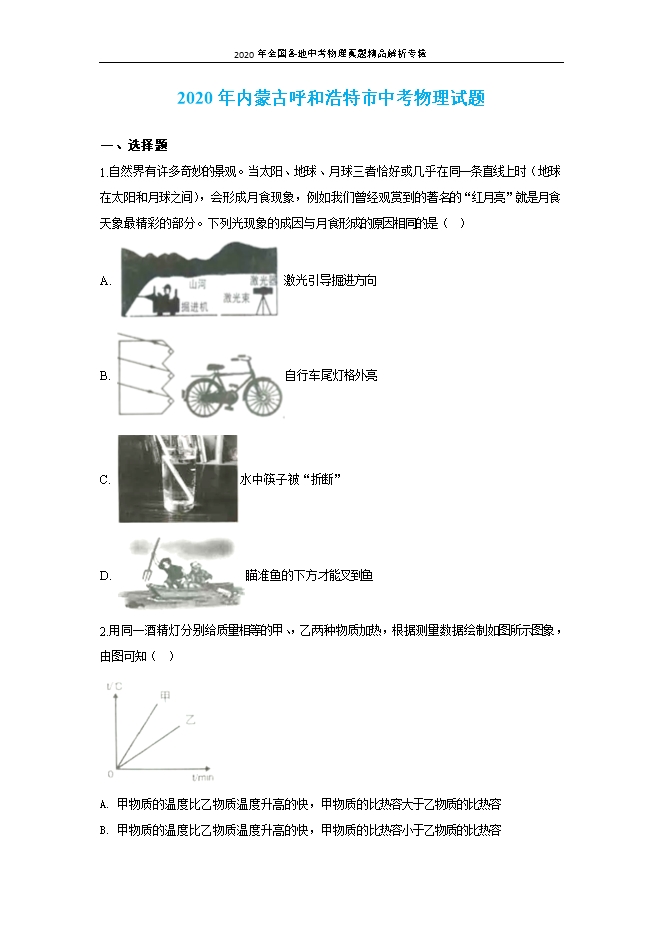2020年全国各地中考物理真题精品解析专辑:内蒙古通辽卷(word解析版和原卷版)