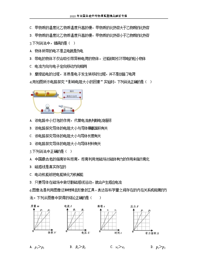 - 14312020年全国各地中考物理真题精品解析专辑:四川达州卷(word解析版和原卷版)