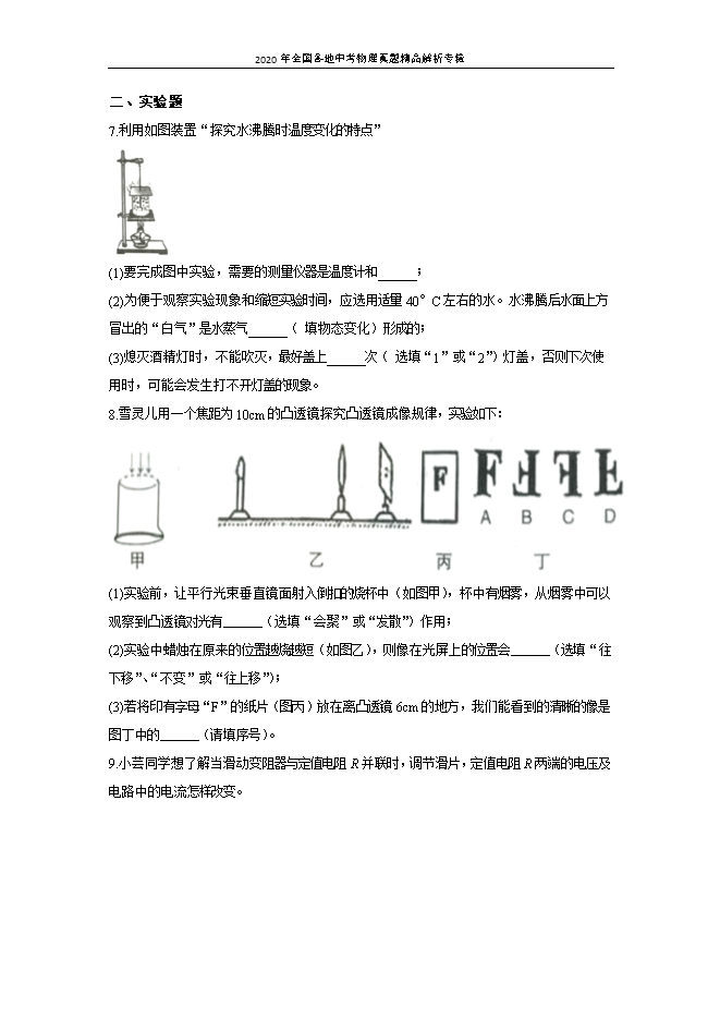 - 6442020年全国各地中考物理真题精品解析专辑:上海卷(word解析版和原卷版)