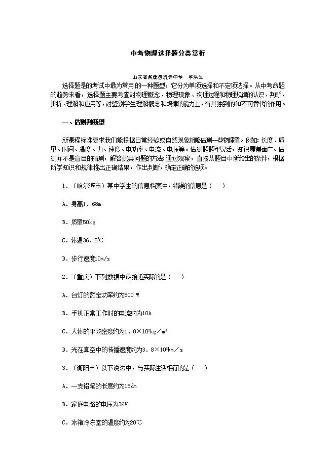2020年全国各地中考物理真题精品解析专辑:山东青岛卷(word解析版和原卷版)