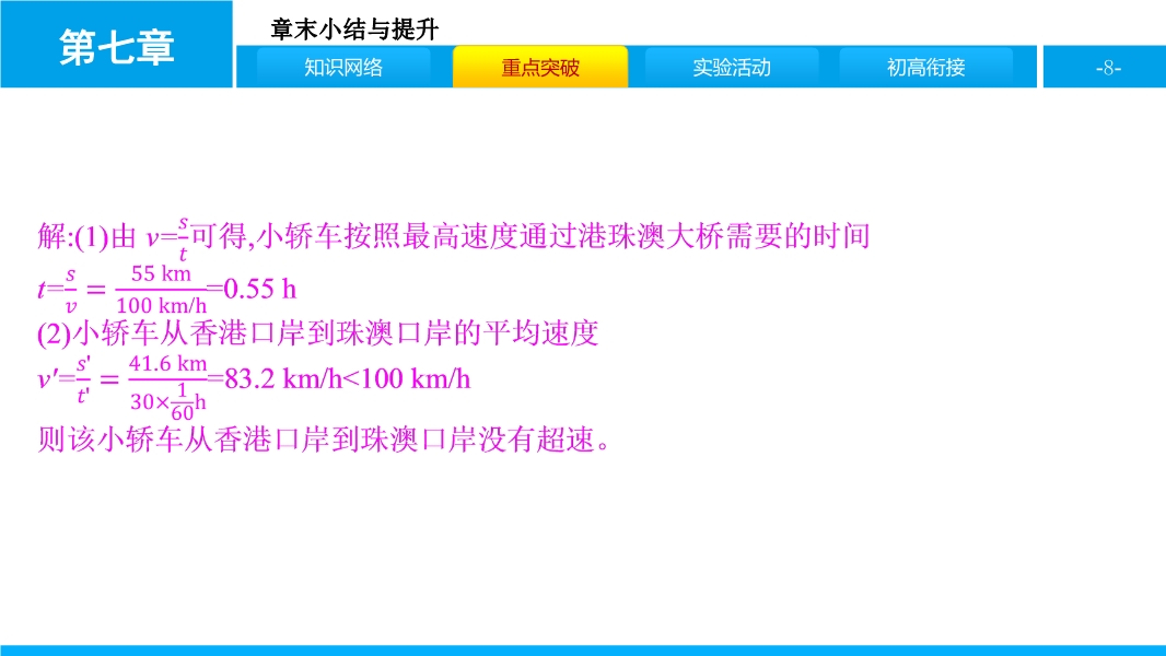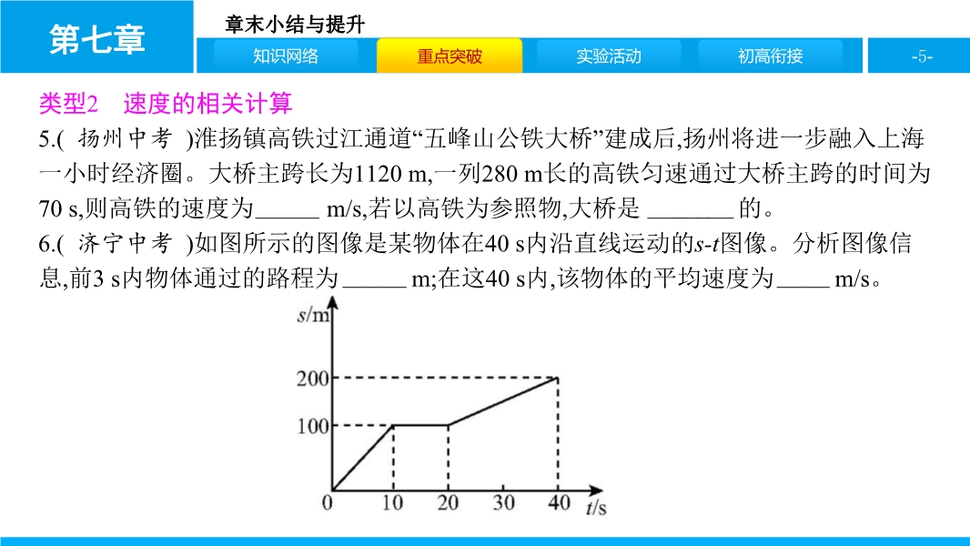 - 402026春沪粤版物理八年级下学期全套培优精做课件:7.2 运动的快慢 速度