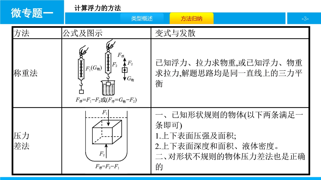 【内容简介】1.量筒的使用量筒、量杯是用来测量体积的工具,量筒壁上相邻两条刻度线对应的数值差所代表的体积为分度值,其单位也在筒壁上标出,一般为毫升(mL,即cm3),最上面的刻度是量筒的最大测量值,即量程。(1)量筒(量杯)的使用方法∶①“平放”:将量筒放在水平台上;②“观察”:使用前观察其量程和分度值;③“读数”:读数时视线应与液面的凹面底部(或凸面顶部)相平,如图所示: (2)几点说明:①量筒所标单位是mL,与其他单位的换算关系如下∶1mL=1cm3,1L=103mL=103cm。②量筒中所盛液体液面的凸、凹与所盛液体种类有关;盛水、酒精等液体时,液面是凹面,盛水银时, 液面是凸面。⑨不能用量筒测量对玻璃有腐蚀性的液体。2.用量筒测量液体或固体的体积⑴测液体或固体的体积(直接测量法)。①液体:将液体倒入量筒,根据液面的位置直接读取液体的体积。②形状规则的固体:可直接用刻度尺测边长,并用体积公式算出,如长方体体积V=abc,正方体体积V=a³,圆柱体体积 V=πr2h。⑵测固体的体积(间接测量法)。①形状不规则,密度大于水的固体:“排水法”:向量筒内注入适量的水,记下水面位置 V1,,再将固体用细线系住慢慢全部浸入量筒的水中,记下水面位置V2,则被测固体的体积V=V2-V1。(3)形状不规则,密度小于水的固体:①“沉坠法”:将被测固体和能沉入水的重物用细线系在一起(重物系在下面),先将重物浸没在水中,记下水面的位置 V1,,再将被测固体也浸没在水中,记下水面的位置V2,则被测固体的体积V=V2-V1。②“针压法”:向量筒内注入适量的水,记下水面位置V1,,再用细针将固体全部压入量筒的水中,记下水面位置V2,则被测固体的体积V=V2-V1。(3)较大固体(不能放入一般的量筒中)“溢杯法”:把烧杯装满水,且以刚好不溢出为准,此时把固体浸没烧杯内的水中,且同时用另一容器承接溢出的水,再把承接到的水用量筒测出其体积V,则V就是被测固体的体积。3.测量液体和固体的密度测出物体的质量和体积后,可根据公式 算出物体的密度。⑴测量固体的密度:固体的质量可直接由天平测出,对于形状规则的固体可用刻度尺测算体积;对于形状不规则的固体,则要用量筒和水测其体积。⑵测量液体的密度:液体的体积可直接由量筒测出,液体的质量要用天平分两次测出,因为液体都要用容器盛装,用天平测得的质量中包含了容器的质量,在测量液体质量时,必须减去容器的质量。①用天平和量筒测量液体密度的一般步骤是:a.在玻璃杯中盛液体,称出它们的总质量 m1;b.把玻璃杯中的液体倒入量筒中一部分,记下量筒中液体的体积V;c.称出玻璃杯中剩余液体和玻璃杯的总质量m2;d.利用密度公式 求出液体的密度。⑶测量液体的密度,为了减小误差,而采用了先测出杯、液总质量,再测出倒出液体的体积,最后测量剩余杯、液总质量的方法。如果先测空烧杯质量,再测烧杯和液体总质量,再把液体全部倒入量筒中测其体积,这样会有一部分液体残留在烧杯内壁,使测量的体积偏小,测量结果不准确。⑷测量固体的密度的一般步骤:①用天平测出物体的质量m;②用量筒(或刻度尺)测出物体的体积V;③用公式 要计算出物体的密度。