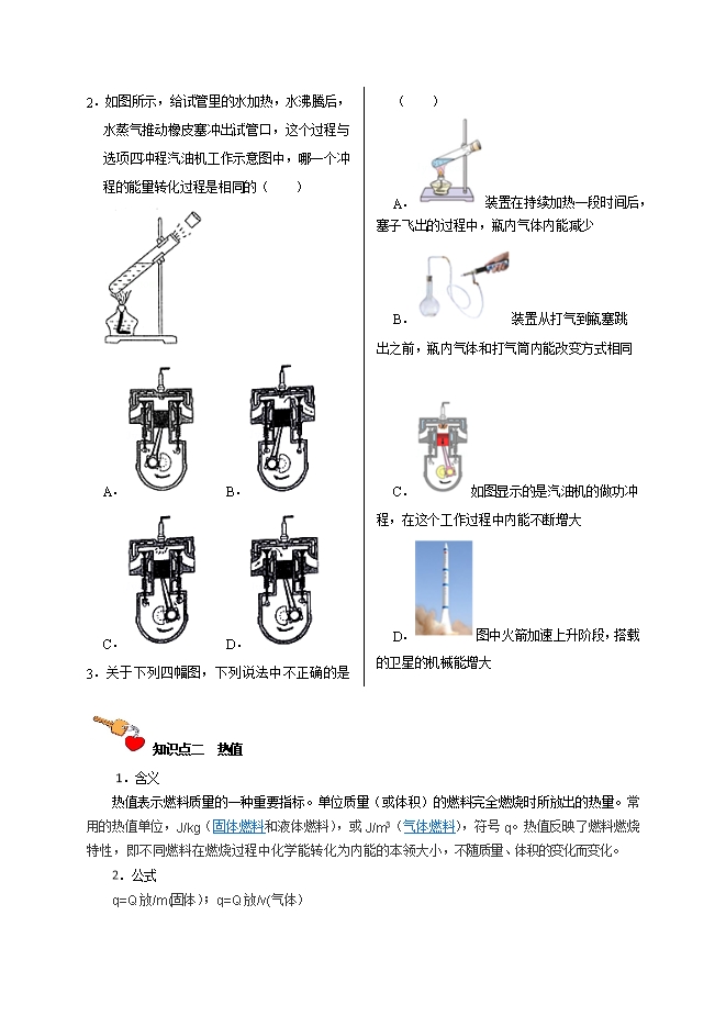 【内容简介】1.(2020河北)蹦极是一种运动游戏。如图中 点是弹性绳自然下垂时绳下端的位置, 点是游戏者所能到达的最低点。当游戏者离开跳台向 点运动的过程中(忽略空气阻力),其重力势能逐渐转化为 动 能;游戏者从 点到 点的过程中,绳子具有的 能逐渐增加;到达 点时游戏者受到的弹力大于重力,所以游戏者在 点时 (选填“是”或“不是” 处于平衡状态。 【分析】动能的大小与速度和质量有关,重力势能的大小与质量和高度有关,据此判定能量的转化;根据绳子的形变程度分析其弹性势能的变化;物体受到的合力为0时,处于平衡状态。【解析】游戏者从最高点到 时,高度减小,速度变大,重力势能减小,动能变大,重力势能转化为动能;从 点到 点的过程中,绳子逐渐伸长,弹性形变程度变大,弹性势能变大;到达 点时游戏者受到的弹力大于重力,合力不为0,所以游戏者在 点时不是处于平衡状态。故答案为:动;弹性势;不是。【点评】该题考查了动能、重力势和弹性势能之间的变化,关键是对各自影响因素和受力情况的分析。2.(2019河北)卫星是通过___________传递信息的,它从图所示位置向近地点运行时势能___________(选填“增大”、“减小”或“不变”);站在地面上的人观察到同步卫星静止不动,选取的参照物是_______。 【答案】电磁波 减小 地面 【解析】【详解】电磁波可以在真空中传播,卫星是通过电磁波来传递信息的。卫星从远地点运行到近地点时,相对高度减小,所以势能减小,同时速度增大,动能增大。站在地球上的人如果以地球为参照物,同步通信卫星与地球之间的相对位置没有发生改变,所以观察到地球同步通信卫星在空中静止不动。3.(2018河北)下列说法正确的是A. 静止的物体可能受到摩擦力的作用B. 越高的拦河大坝,水的重力势能一定越大C. 火车进站时需提前减速,是因为火车受到惯性作用D. 地面上滚动的小球越滚越慢,是由于小球的惯性越来越小【答案】A【解析】分析:(1)根据摩擦力的产生条件知有摩擦力必有弹力,摩擦力的方向与接触面相切,可能与运动方向相同,也有可能与运动方向相反;(2)根据重力势能 影响因素做出判断;(3)物体保持原来运动状态不变的性质叫做惯性;惯性是物体的一种特性,惯性大小只跟物体的质量大小有关,跟物体是否受力、是否运动、运动速度等都没有关系.解答:A、静止的物体可能受到摩擦力,只要有相对运动趋势即可,比如手握住杯子处于静止状态,此时杯子受向上的摩擦力;故A正确;B、拦河大坝使水位升高,只有在质量一定时,高度越高,水的重力势能才越大,故B错误;C、火车进站时需提前减速,火车由于惯性会继续向前运动,这样可以节省燃油;惯性是物体本身具有的一种性质,不是外界施加的一种作用,不能说受到惯性作用,故C错误;D、地面上滚动的小球越滚越慢,是因为受到地面的阻力,运动速度虽然越来越慢,但质量不变,所以小球的惯性大小不变,故D错误;故选A.【点睛】了解有关摩擦力、能量转化、惯性的相关知识,熟知影响动能、势能等的因素,理解惯性的概念,是解答的关键.4.(2017河北)如图所示,一小球熊斜面顶端由静止开始滚下,小球的重力势能减小,动能 ,小球运动到斜面底端,由于 ,小球会在水平面上继续运动,运动的小球如果不受阻力,它将做 运动. 【答案】增加;惯性;匀速直线【解析】试题分析:小球熊斜面顶端由静止开始滚下,其质量不变,速度变大,所以动能增加;小球运动到斜面底端,由于惯性,仍要保持原来的运动状态,所以小球会在水平面上继续运动;对小球进行受力分析可知,小球在竖直方向上受到重力和支持力的作用,并且这两个力是一对平衡力,在水平方向上如果不受阻力,它将做匀速直线运动。【考点定位】动能和势能的大小变化;6J:牛顿第一定律;6L:惯性5.(2016河北).图4所示实验得出的结果不正确的是( ) A.甲实验:火柴梗的a点最先炭化,说明火焰的外焰温度最高B.乙实验:毛皮摩擦过的橡胶棒使验电器的金属箔片张开,说明橡胶棒带负电C.丙实验:冷却后析出晶体,说明硝酸钾的溶解度随温度降低而减小D.丁实验:滚摆从上向下运动,速度增大,说 明重力势能减小,动能增大