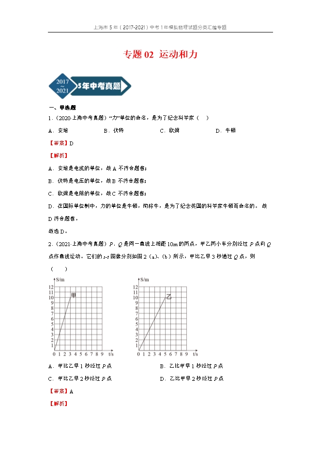 【内容简介】1.答卷前,考生务必用0.5毫米黑色墨水笔将自己的姓名和考试号填写在试卷、答题卷上相应位置.2.答选择题必须用2B铅笔将答题卷上对应的答案标号涂黑.如需改动,请用橡皮擦干净后,再涂其他答案.答非选择题必须用0.5毫米黑色墨水笔作答,答案必须写在答题卷各题目指定区域内相应位置上;如需改动,先划掉原来的答案,然后写上新的答案.不按以上要求作答的答案无效.3.作图题请先用2B铅笔作答,确认无误后请用0.5毫米黑色墨水笔描黑.一、选择题(本题共12小题,每小题2分,共24分.每小题只有一个选项是正确的)1.在国际单位制中,电流的单位是A.WB.AC.VD. 2.下列杠杆中属于费力杠杆的是 A.瓶盖起子B.托盘天平C.核桃夹D.钓鱼竿3.下列事例中能量转化情况与汽油机压缩冲程不同的是 A.塞子飞出B.搓手取暖C.压缩气体D.钻木取火4.对于热量和内能,下列说法中正确的是A.温度为 的物体没有内能B.某物体温度降低,它的内能减少C.物体温度越高所含有的热量越多D.温度相等的 水和 水内能相等5.关于物理量的估测,以下说法中错误的是A.微波炉正常工作时,其功率大约为 B.家中的电风扇正常工作时,其功率大约为 C.手电筒的小灯泡正常工作时,灯丝中的电流大约为 D.家中仅有电冰箱正常工作时,干路中的电流大约为 6.材料、横截面积均相同的两根电阻丝(温度相同),a的长度小于b的长度,则A.a的电阻小于b的电阻B.a的电阻等于b的电阻C.a的电阻大于b的电阻D.无法判断a与b电阻的大小7.两只灯泡 和 连接在同一电路中,以下哪种现象可以确认两灯一定是并联的A.通过两灯的电流不相等B.通过两灯的电流相等C.两灯两端的电压相等D.两灯亮度不同8.如图所示,用同样的器材进行实验,现要求仅根据温度计示数的变化( ),比较不同物质的吸热本领(实验1)或者比较不同燃料的热值(实验2),则以下说法中正确的是A.这两个实验均需要控制被加热的物质的种类一样B.这两个实验均需要控制实验中用完全相同的燃料C.正确完成实验1后,若 越小,则该物质的比热容越大D.在实验2中,加热相同时间后,若 越大,则该燃料的热值一定越大