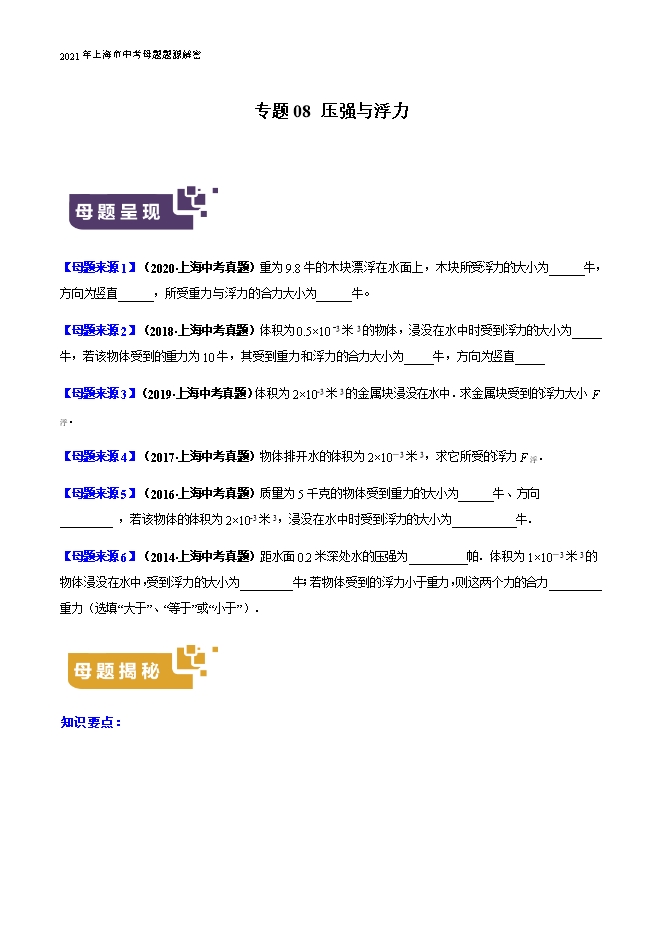 - 1015【精品】备战2021年中考物理实验精练精解专题:实验题20 探究“二力平衡条件”(原卷版和解析…