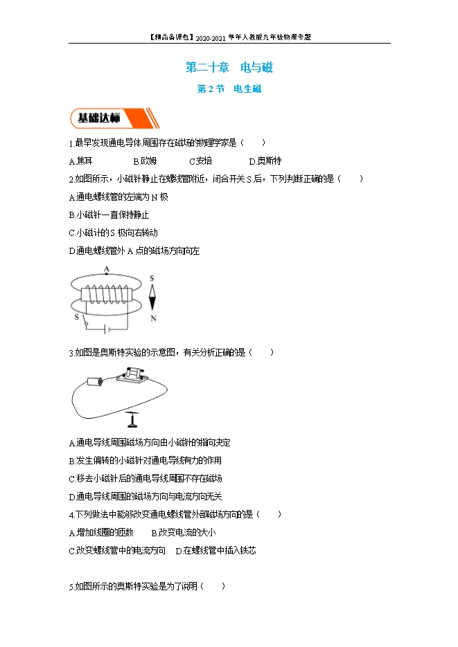 - 2182025-2026人教版物理九年级全一册培优卷:第二十章 电与磁(附解析)