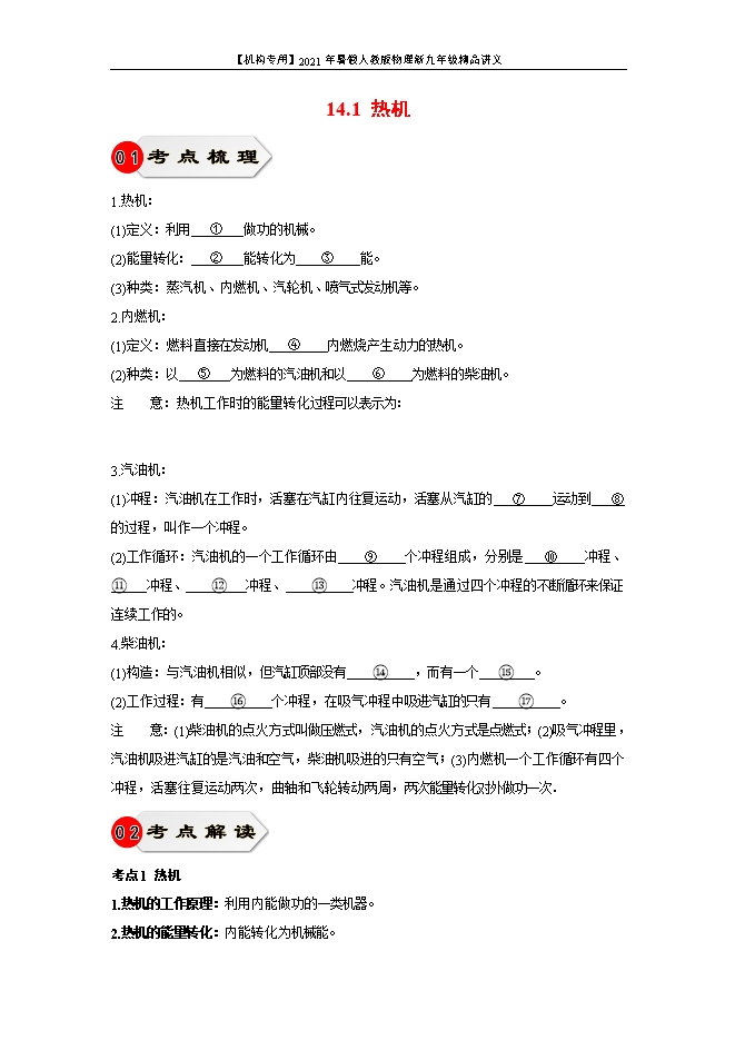 所属专辑: 【机构专用】2021年暑假人教版物理新九年级精品讲义(教师版和学生版)