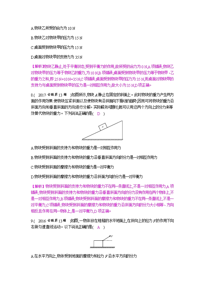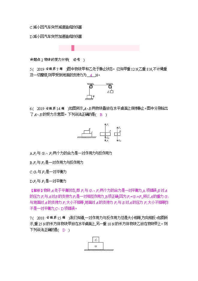 【内容简介】1.下面数据中符合生活实际的是( )A.教室里课桌的高度大约是80dmB.一名中学生的质量约为500kgC.人体感觉舒适的气温约为40℃D.人体安全电压不高于36V2.今年,我国发射的“天舟四号”货运飞船与“天和号”核心舱在太空成功对接。对接后,它们一起绕地球转动。对这一过程所涉及的物理知识说法措误的是() A.火箭加速升空过程与汽油机做功冲程的能量转化形式相同B.运载火箭用液态氢做燃料,是因其热值较大C.对接后以“天舟四号”为参照物,“天和号”是运动的D.地面工作人员利用电磁波传递信息来控制对接过程3.物理学对其它自然科学产生着重要的影响,引领着人类对自然奥秘的探索,深化着人类对自然界的认识。对下列自然现象认识正确的是( )A.雄鹰展翅翱翔,利用了伯努利原理B.高原上不易煮熟食物,是因为海拔越高,气压越低,水的沸点越高C.蝙蝠飞行时靠次声波来定位D.鱼体表的黏液是为了增大摩擦4.2022年2月,第24届冬奥会在北京成功举办,小华得到了冬奥会吉祥物“冰墩墩”。他和“冰墩墩”一起完成了几个光学实验,下列描述与实验情景不相符的是()A. 平面镜中的像由光的反射形成B. 通过放大镜看到的像是实像C. 小孔成像是因为光沿直线传播D. 岸上看到水中的虚像比物体位置高5.中国传统节日的习俗中涉及诸多物理现象,下列分析正确的是( )A.春节燃放烟花爆竹,小朋友捂住耳朵,是在传播过程中减弱噪声B.元宵节吃汤圆,煮熟后的汤圆漂浮在水面,是因为汤圆受到的浮力大于重力C.端午节赛龙舟,观众的呐喊声“震耳欲聋”,是因为声音的音调高D.中秋节吃月饼,月饼香气四溢,是因为分子在不停地做无规则运动6.风能作为一种清洁的新能源,越来越受到世界各国的重视。风力发电已成为我国新能源战略的重要组成部分。下列选项中与风力发电机原理相同的是( )