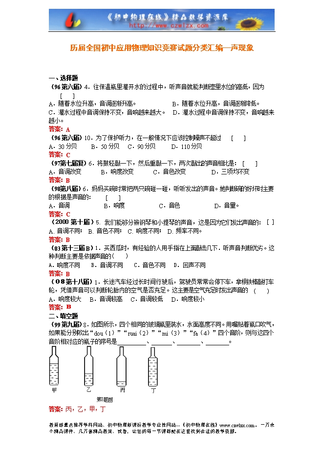 【内容简介】一、选择题(共14题,每题2分,共28分。每小题只有一个选项是符合题意的)1.下列关于教室内物品的尺度最接近0.75m的是( )A.物理书的长度 B.课桌的高度 C.教室门的高度 D.圆珠笔的长度2.“灼灼荷花瑞,亭亭出水中”如图1所示,夏天公园里荷花在水中倒影格外美丽,这种现象的原理是( ) 图1A.光的反射 B.光的直线传播 C.光的折射 D.光的色散3.如图2所示,用厚刻度尺测量木块的长度,其中正确的测量图是( )A. B. C. D. 图24.高甲戏是闽南地区的一种传统地方戏剧之一。观看演出时,人们能分辨出小锣、梆子的声音是依据声音的( )A.音调 B.响度 C.音色 D.传播速度5.如图3所示是我国古代劳动人民利用滚木巧妙移动巨石的情景。下列措施中,改变摩擦力大小的方法与此相同的是( ) 图3A.用力捏车闸可以使自行车更快地停下来 B.鞋底设计有很多凹凸不平的花纹C.雪天给大货车轮胎上加装防滑链 D.许多机器的转动部分都安装了滚动轴承6.如图4所示的几种现象中,说明力可以改变物体运动状态的是( )A.弓被拉开 B.跳板被压弯 C.足球被踢开 D.竹子被压弯 图47.下列物体的质量,发生了变化的是( )A.冰块全部熔化成水 B.铝块拉成铝线 C.将月壤带到地球 D.将菜刀刃磨薄8.如图5所示,使一薄钢条的下端固定,现今分别用大小不同的力去拨它,如果 ,那么,能说明力的作用效果跟力的方向有关的图是( ) 图5A.图a和图c B.图b和图d C.图a和图b D.图a和图d9.一著名运动员在100米赛跑中,起跑时速度是9m/s,中途的速度是7m/s,如果他的成绩是10s,则他全程的平均速度是( )A.7m/s B.9m/s C.11m/s D.10m/s10.如图6所示,关于光的反射,下列说法正确的是( )