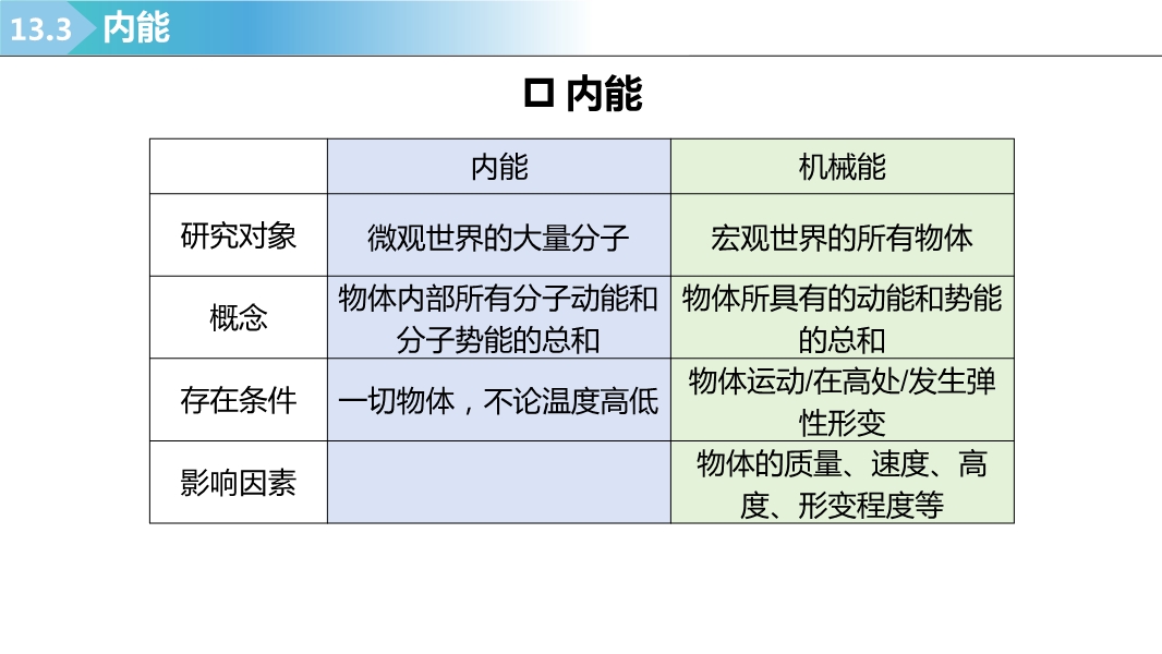 【内容简介】2025-2026学年新人教版九年级上学期物理课件:13.3内能