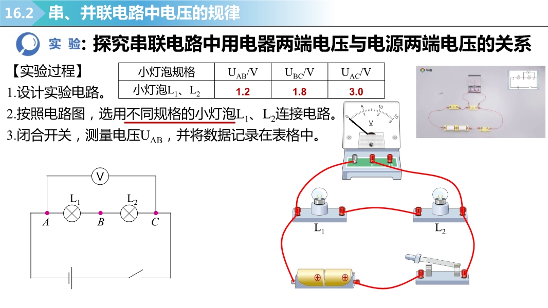 【内容简介】2025-2026学年新人教版九年级上学期物理课件:16.2串、并联电路中电压的规律