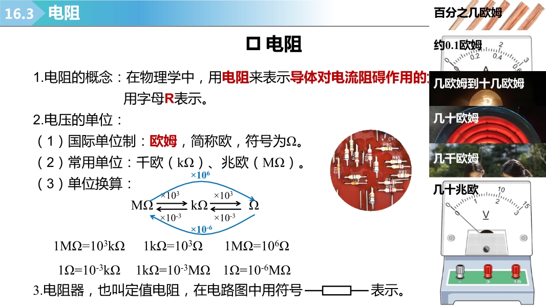 【内容简介】2025-2026学年新人教版九年级上学期物理课件:16.3电阻