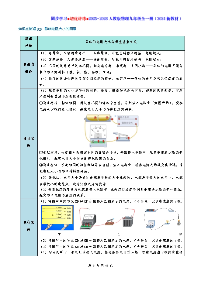 专题16.3 电阻--2025-2026人教版物理九年级全一册同步学习 培优讲练:知识梳理+考点讲练+中考真题演练+难度分层(试题版和答案版)