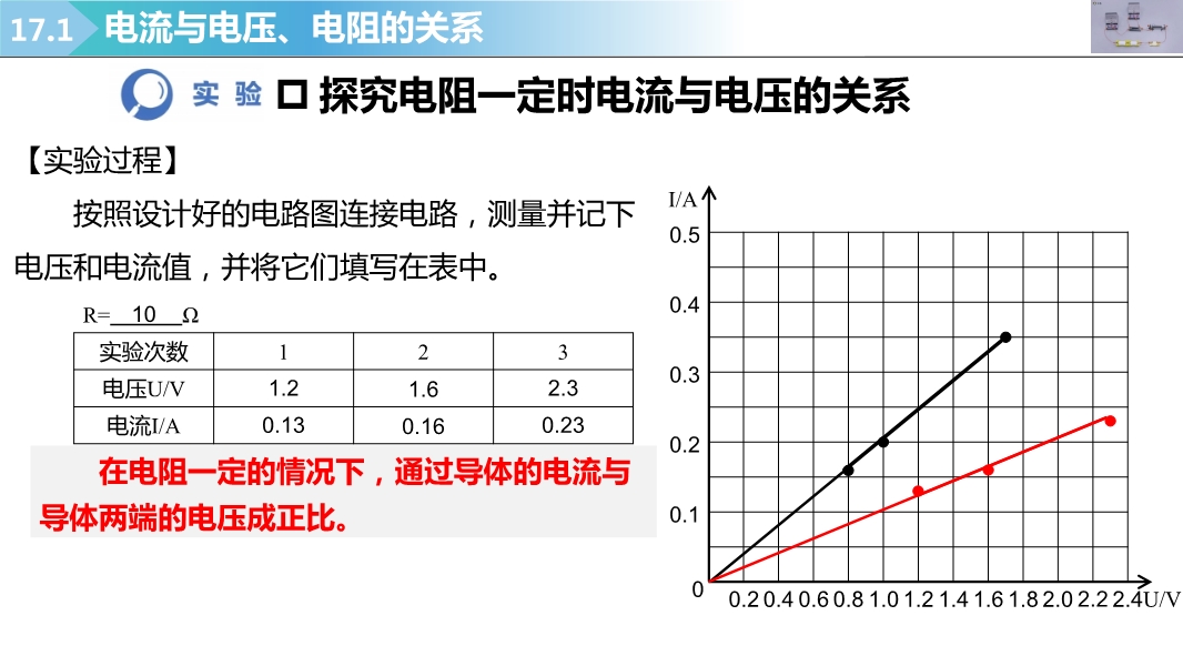 【内容简介】2025-2026学年新人教版九年级上学期物理课件:17.1电流与电压、电阻的关系