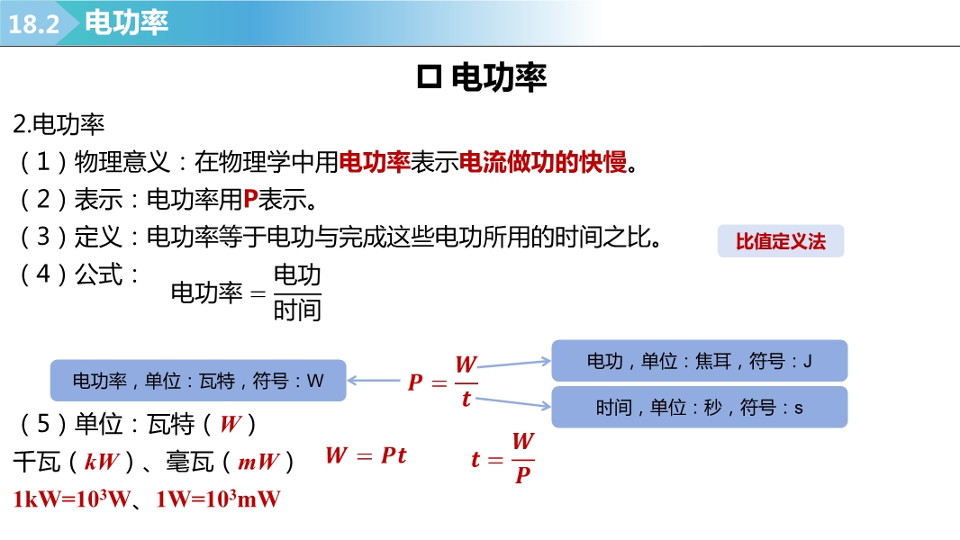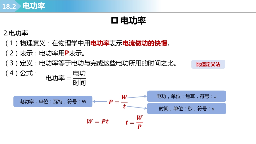2025-2026学年新人教版九年级上学期物理课件:18.2电功率