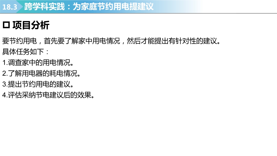 【内容简介】2025-2026学年新人教版九年级上学期物理课件:18.3跨学科实践:为家庭节约用电提建议
