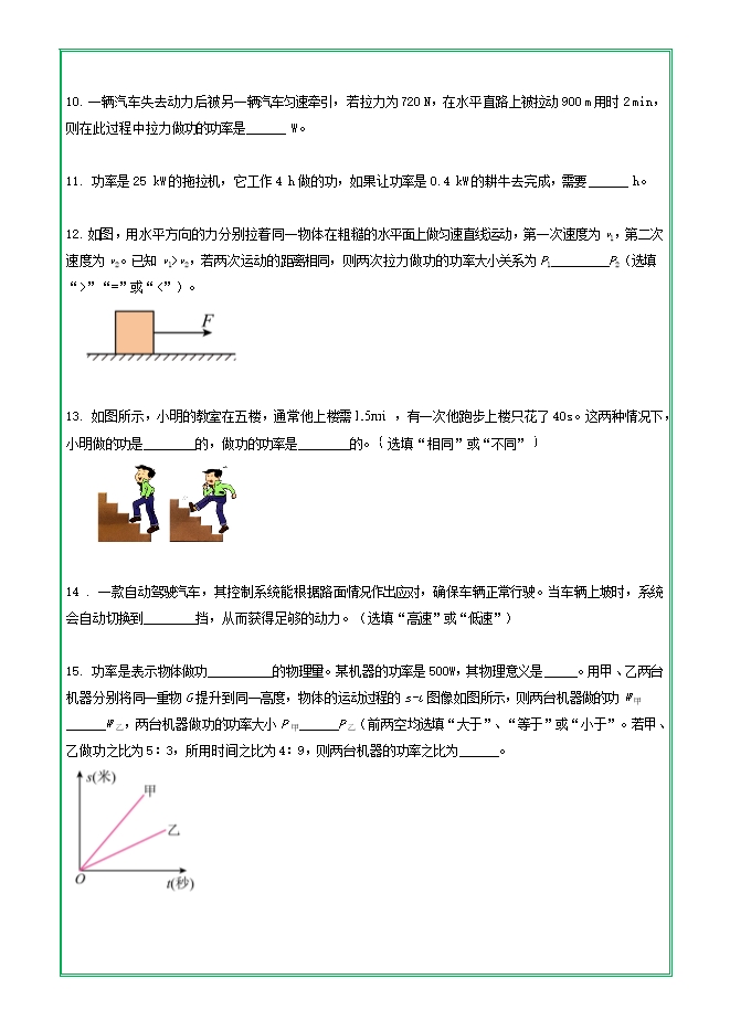 第十一章 第二节 功率—2025-2026学年人教版物理八年级下学期预习基础知识填空(附答案)