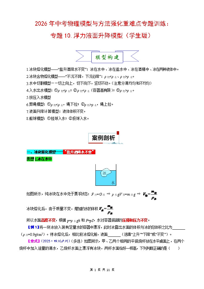 - 892026年中考物理模型与方法强化重难点专题训练:专题12.浮力常考模型—技巧篇(一)(学生版和…