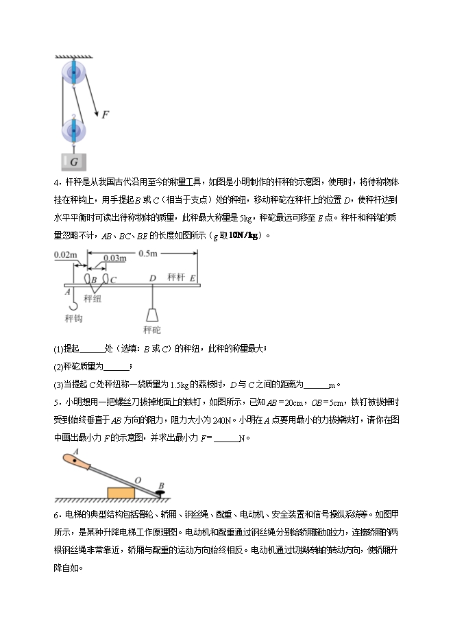 【内容简介】第十二章 简单机械(综合题30道)--2025-2026学年人教版八年级物理全册热点题型专练