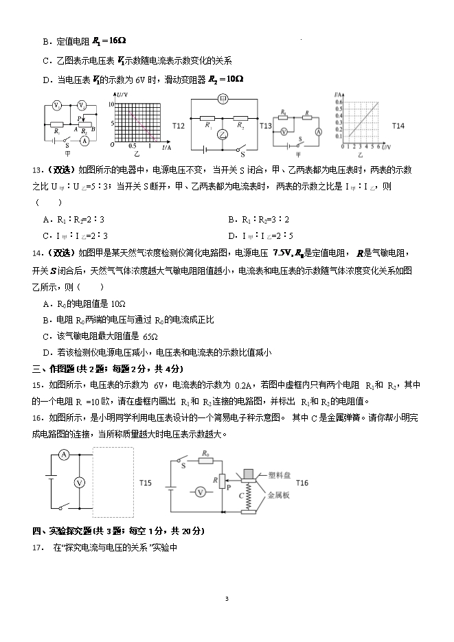 - 33第17章 欧姆定律 培优训练--2025-2026学年九年级阶段性调研试题十三(人教版)【王牌物理河南…