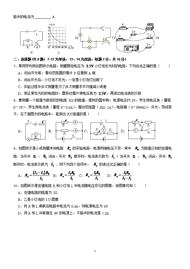 第17章 欧姆定律 培优训练--2025-2026学年九年级阶段性调研试题十三(人教版)【王牌物理河南专版】