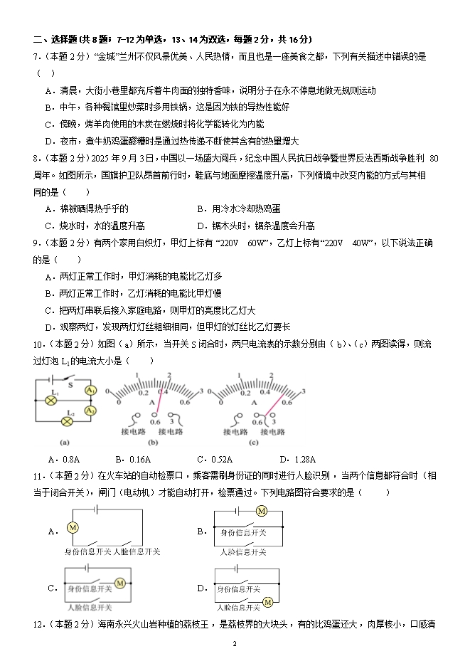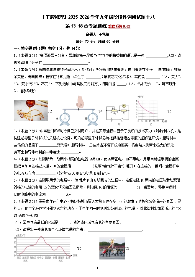 所属专辑: 2025-2026学年九年级阶段性调研试题(人教版)【王牌物理河南专版】