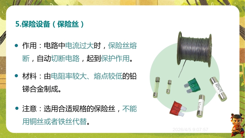 【内容简介】课件聚焦“家庭电路”核心知识,涵盖组成(进户线、电能表等)、电流过大原因及保险设备等内容。通过“观察与思考”导入,结合生活实际问题,衔接电路连接、电压等前序知识,搭建学习支架帮助学生构建知识体系。其亮点在于以生活实例为载体,通过“交流与思考”引导科学思维,结合保险设备作用分析培养科学论证能力,三孔插座安全用电知识渗透科学态度与责任。采用问题驱动和例题解析,课堂小结结构化呈现要点,助力学生掌握知识,也为教师提供丰富教学资源,提升教学效率。