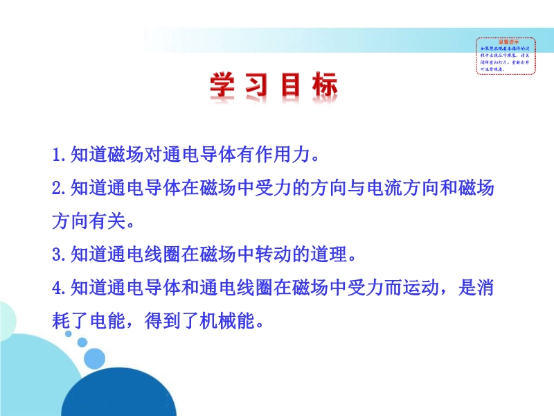 ?了解磁场对通电导线的作用。