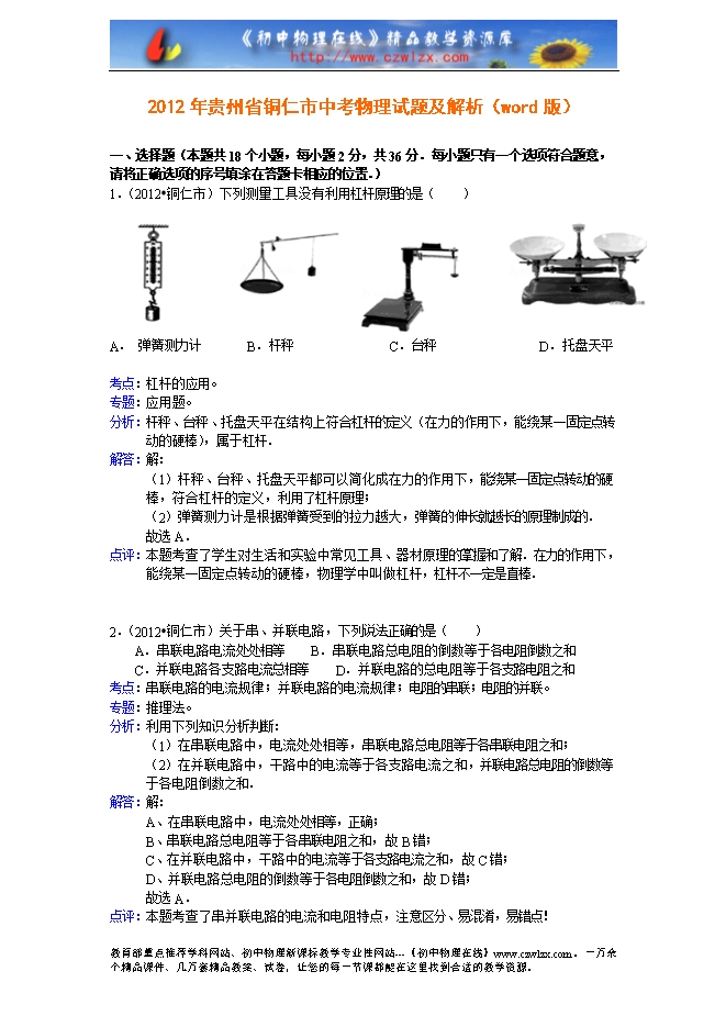 审核人员:初中物理在线