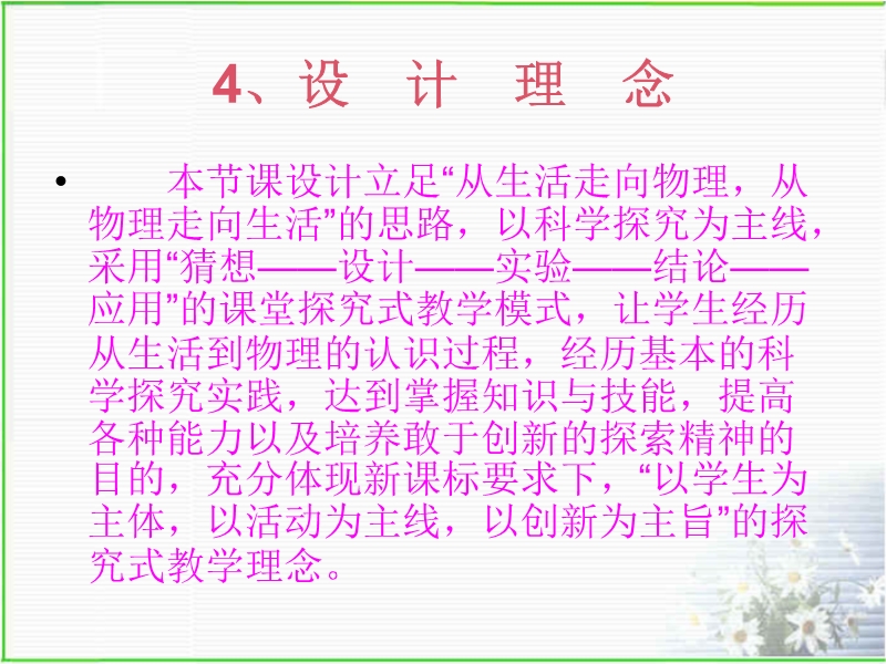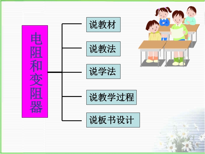 二、过程与方法目标:利用“控制变量法”和“归纳法”对决定电 阻大小 的因素进行实验探究,在探究过程中使学生经历从猜想到制定实验方案,然后进行实验的探究过程