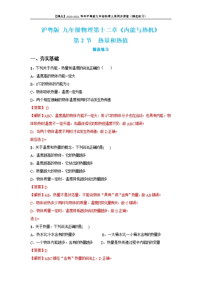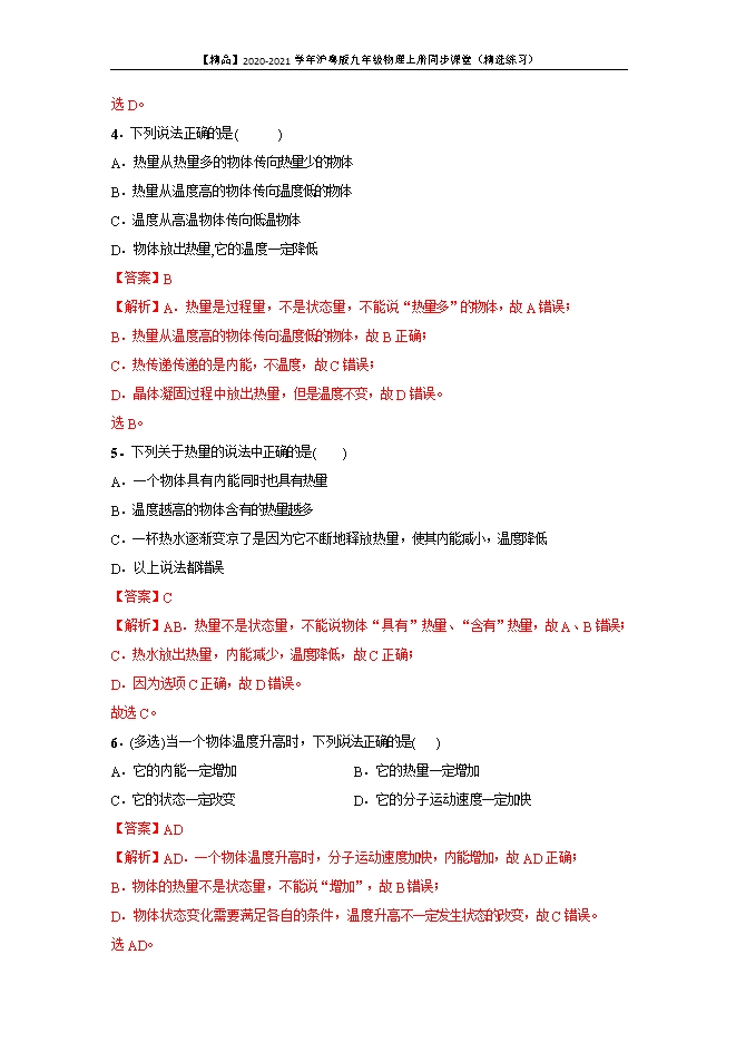 - 1522025-2026人教版物理九年级全一册培优卷:第十三章 内能(附解析)