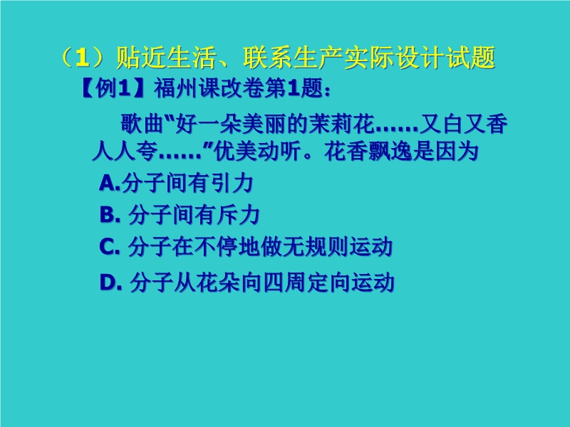 1.榴莲因其果肉香甜又富有营养,被称为水果之王。榴莲被切开后,其香味将很快充满整个房间,这一现象主要说明
