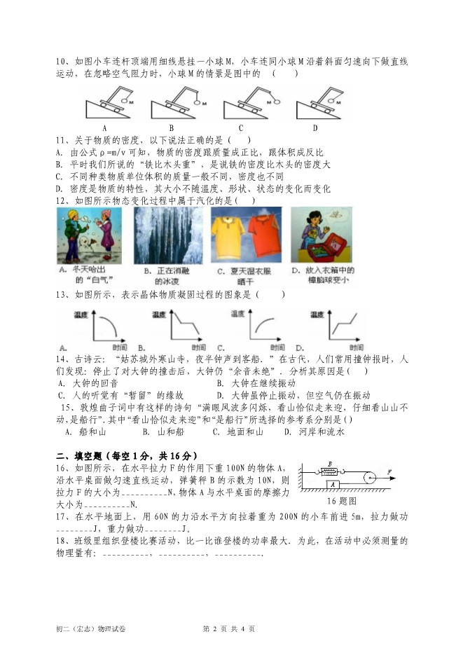 - 7942023-2024学年湖北省襄阳市宜城市八年级上学期期末考试物理试题及答案
