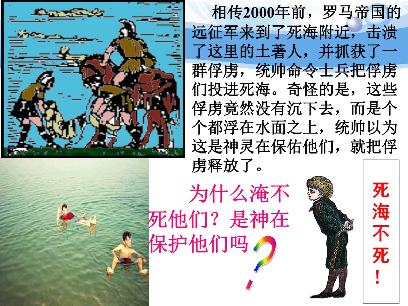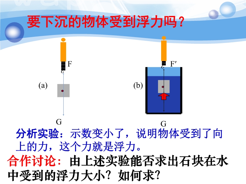 把薄塑料袋套在手上,将手放入水中,你会感到塑料袋紧贴在手上,这说明了什么?在塑料袋内装满水,塑料袋会鼓起来,用手指触及其表面,你又有什么感觉?在塑料袋的不同位置扎上小孔,让水小孔中喷出,对比水喷出的远近,你有什么发现?用手用力挤压塑料袋,再对比水喷出的远近,你又有什么发现?
