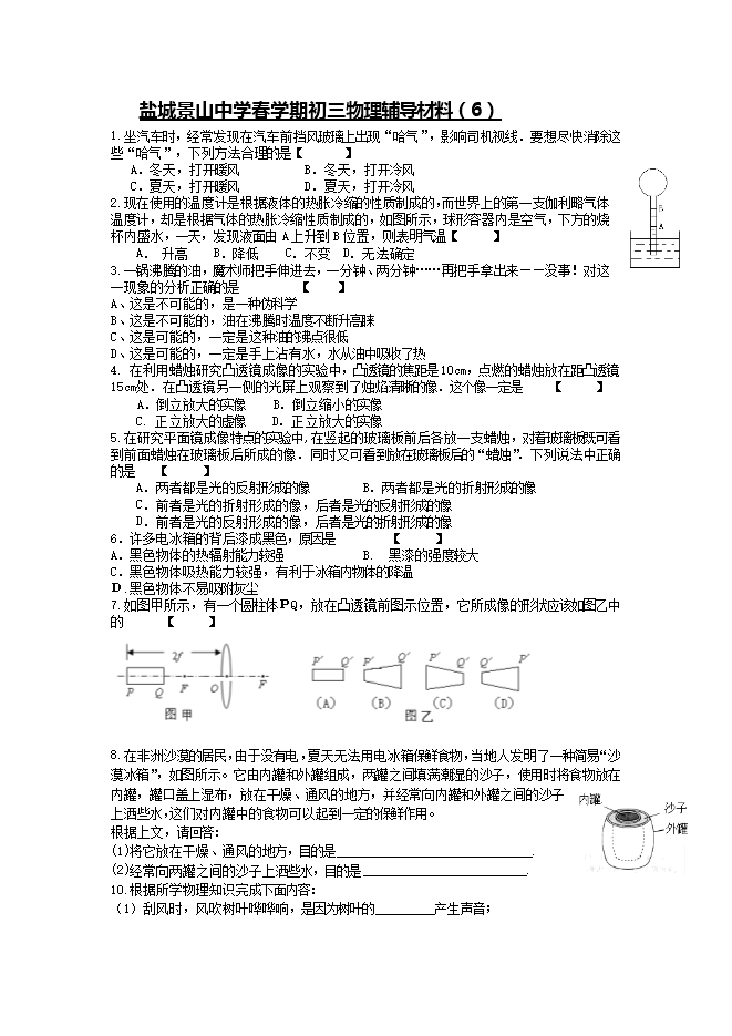 山东省滨州市2016年初中学生学业水平考试物理试题及答案(word版)
