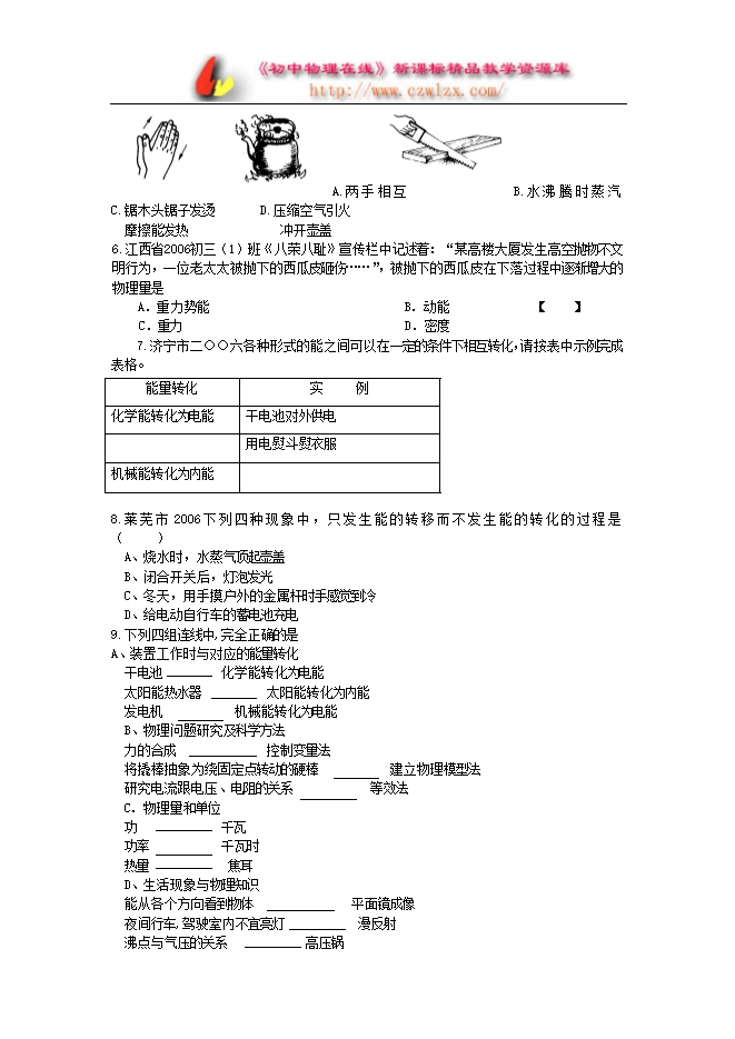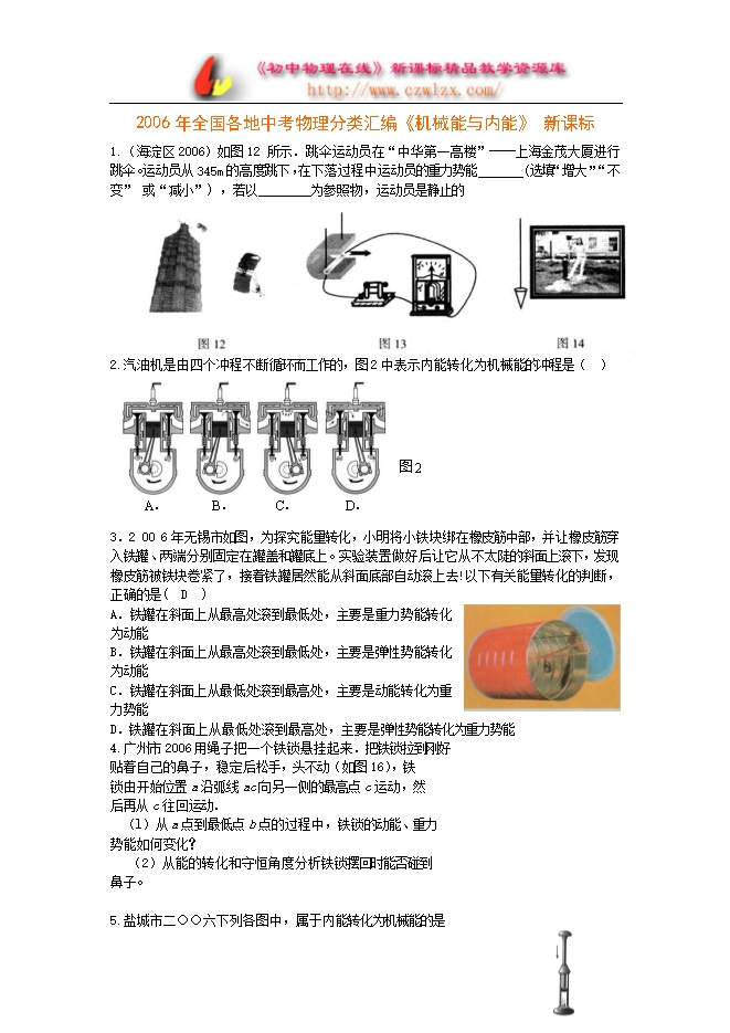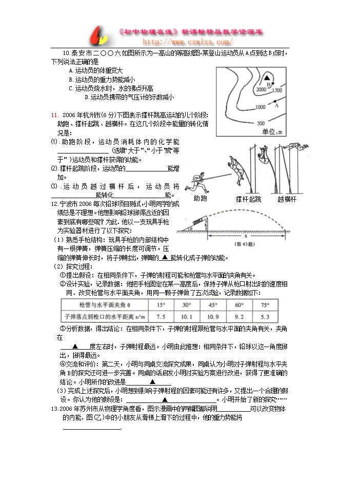 2006年中考试题汇编《功与机械、机械能》