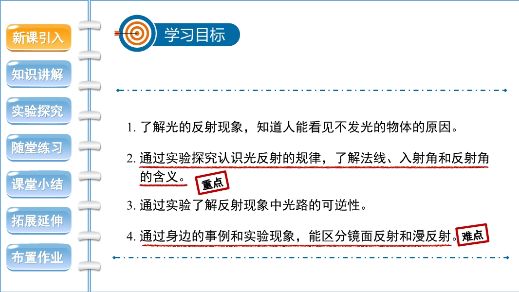 (1)了解物体所受重力和物体质量的关系;知道g=9.8N/Kg和它的物理意义;能熟练使用弹簧测力计;会正确记录实验数据;知道重力的方向、重心及其应用。
