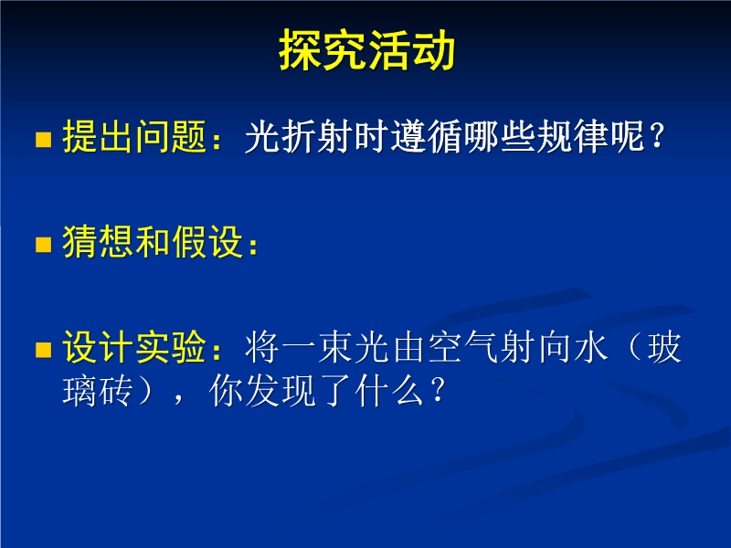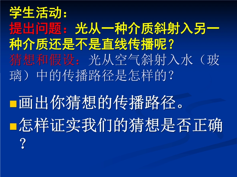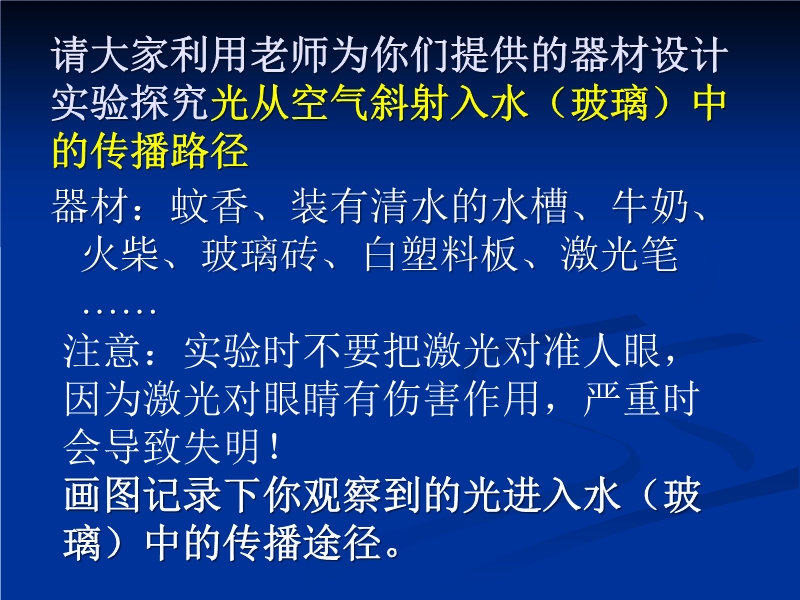 3、能够用光的折射解释生活中的一些简单现象。